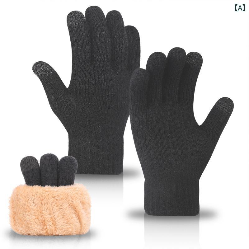 手袋 メンズ レディース 裏起毛 厚手 アウトドア タッチパネル対応 秋冬 保温 防寒 サイクリング 自転車 通勤 通学 アクリル ニットグローブ 二重編み フリーサイズ(x2)