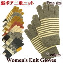 【2点で300円引クーポン】 手袋 レディース ニット 裏地ボア 2重ニット ボーダー柄 紋様柄 M-LL 冬 防寒 防風 かわいい 暖かい P
