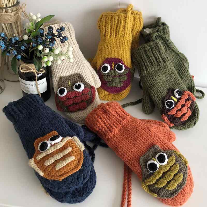 手袋 レディース 韓国 ニット 裏起毛 もこもこ ふわふわ 暖かい 冬 防寒 保温 五本指 普段使い 外出用 通学 シンプル 無地 オレンジ グレー ピンク