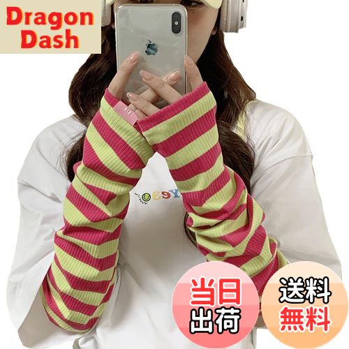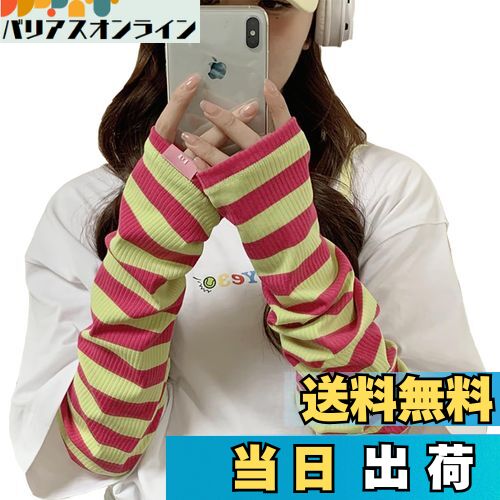 【送料無料】[Ekieta] アームカバー レディース UVカット 夏 日焼け防止 アームスリーブ【UPF50+・紫外線対策・ゆったり・手の甲までカバー】 カラー レディース UVカットアームカバー 日焼け止め UV腕カバー 日焼け対策 指穴あり 色:ストライプオレンジ、サイズ:Free Size