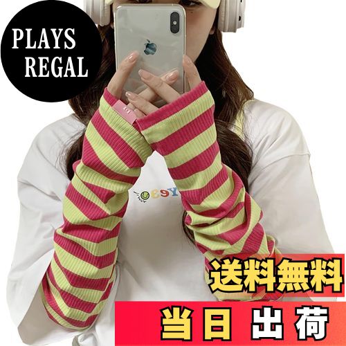 【送料無料】 アームウォーマー35cm丈 切替ボーダー (UVカット効能付) (レッド・ブルー・オレンジ) (裏面メッシュ) (3色セット)みっとめるへん社