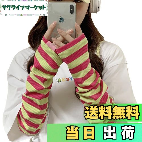 【送料無料】[Ekieta] アームカバー レディース UVカット 夏 日焼け防止 アームスリーブ【UPF50+・紫外線対策・ゆったり・手の甲までカバー】 カラー レディース UVカットアームカバー 日焼け止め UV腕カバー 日焼け対策 指穴あり 色:ストライプオレンジ、サイズ:Free Size