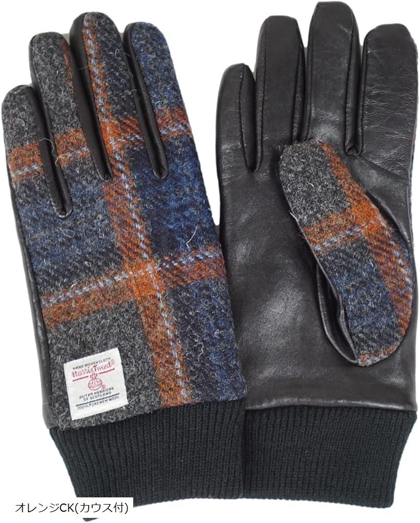 メンズ スマホ対応 ハリスツイード レザー 手袋 裏起毛 24cm ケース付き オレンジCK カウス付 (オレンジCK(カウス付), 24cm)