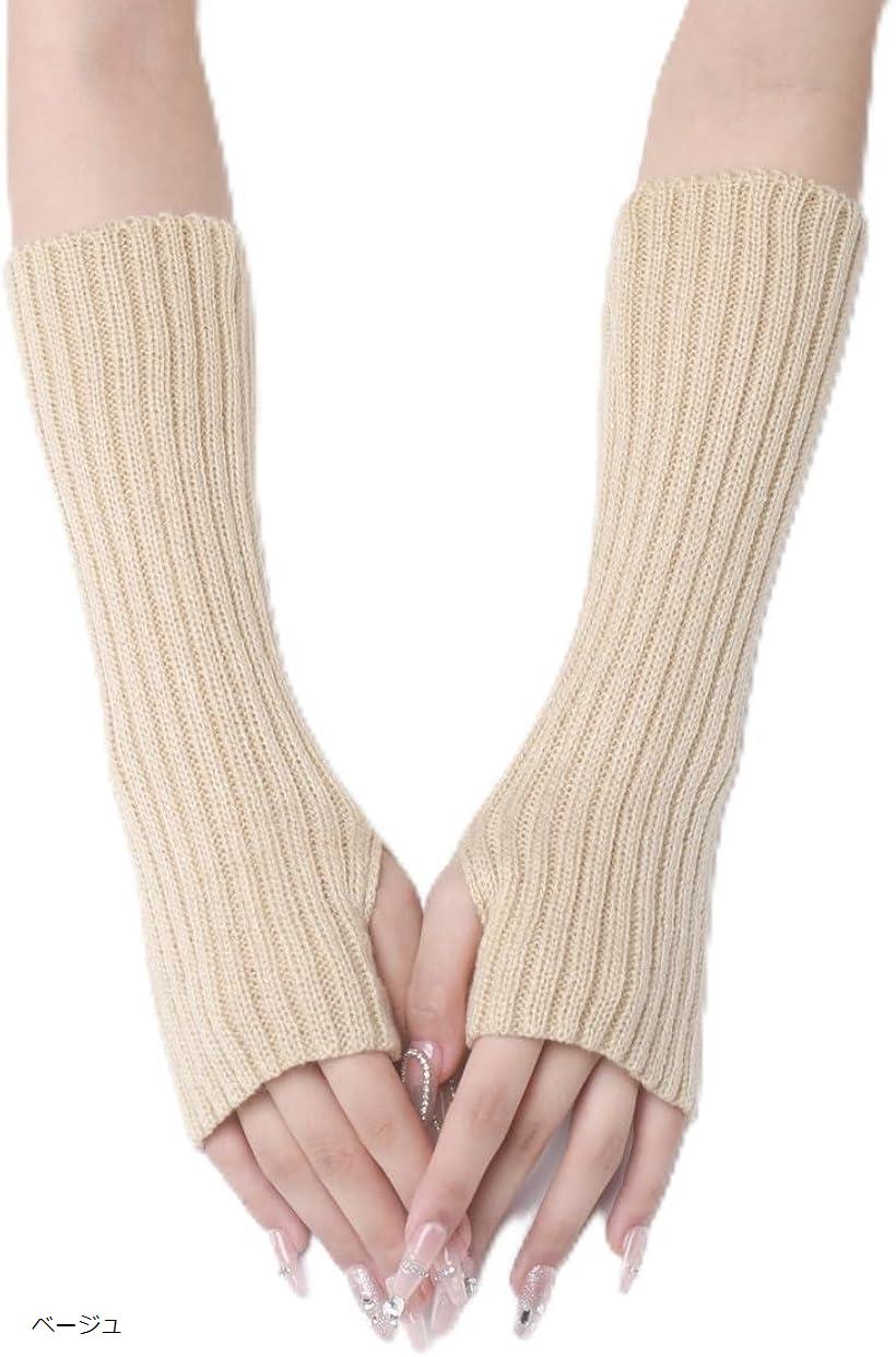 アームウォーマー レディース メンズ ニット 親指穴付き アームカバー カーキ ブラック レッド ホワイト ピンク ブラウン オレンジ ブルー ベージュ