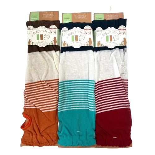 【送料無料】 アームウォーマー35cm丈 切替ボーダー (UVカット効能付) (レッド・ブルー・オレンジ) (裏面メッシュ) (3色セット)みっとめるへん社