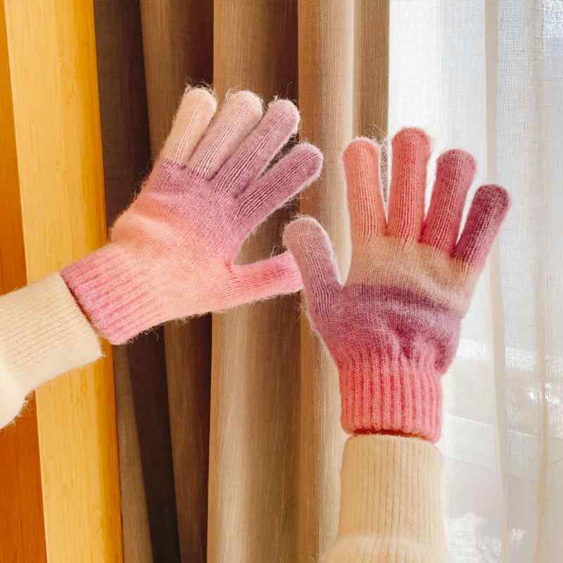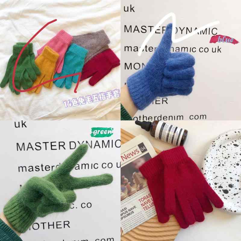 手袋 レディース ニット グローブ 分指タイプ 秋冬 防寒 暖かい 無地 ウール混紡 カジュアル かわいい パープル ブラック ブルー オレンジ ベージュ ピンク グリーン