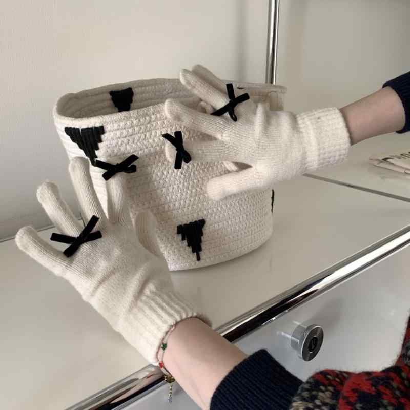 手袋 レディース ニット手袋 スマートフォン対応 秋冬 防寒 保温 蝶々柄 かわいい 学生 通学 指なし手袋 ミトン ガーリー フェミニン 白 グレー 黒 赤 ピンク オレンジ 黄緑 青