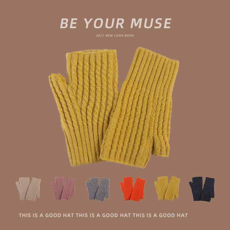 手袋 レディース 秋冬 ニット 半指 手袋 スマートフォン対応 防寒 あったか グローブ ミトン かわいい おしゃれ ベージュ ピンク系 グレー ブルー ブラック オレンジ イエロー ブラウン パープル ダークグレー カーキ 孔雀藍
