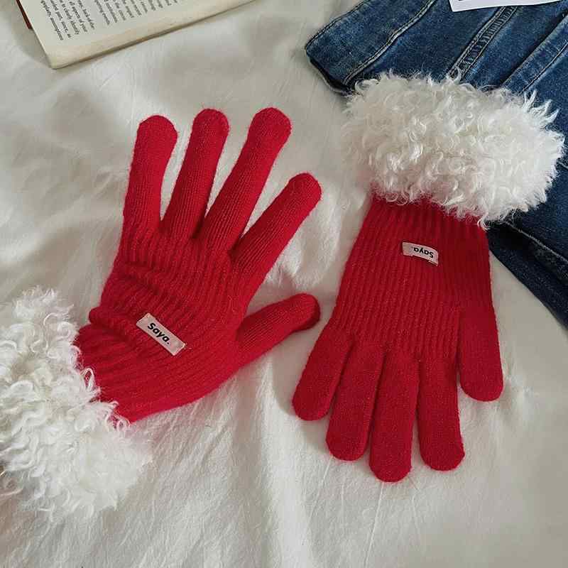 手袋 レディース かわいい ニット ショート グローブ 秋冬 冬 5本指 防寒 スマートフォン対応 茶色 オレンジ 赤 黄緑 白 黒 青 深灰