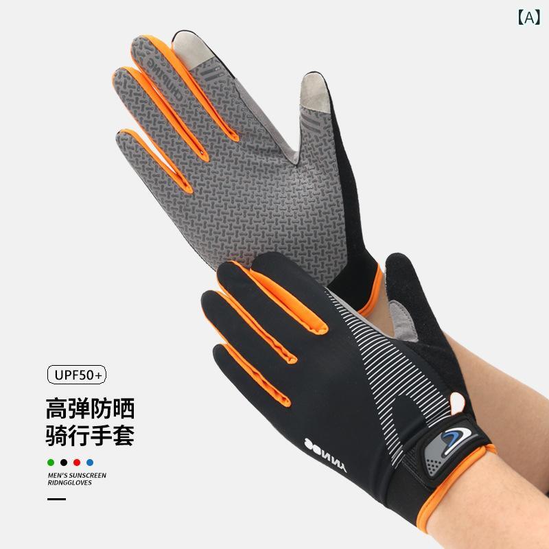 手袋 レディース メンズ 夏用 薄手 接触冷感 通気性 日焼け防止 運転用 滑り止め アウトドア 自転車 ハーィンガー 黒 オレンジ 青 グレー(x2)