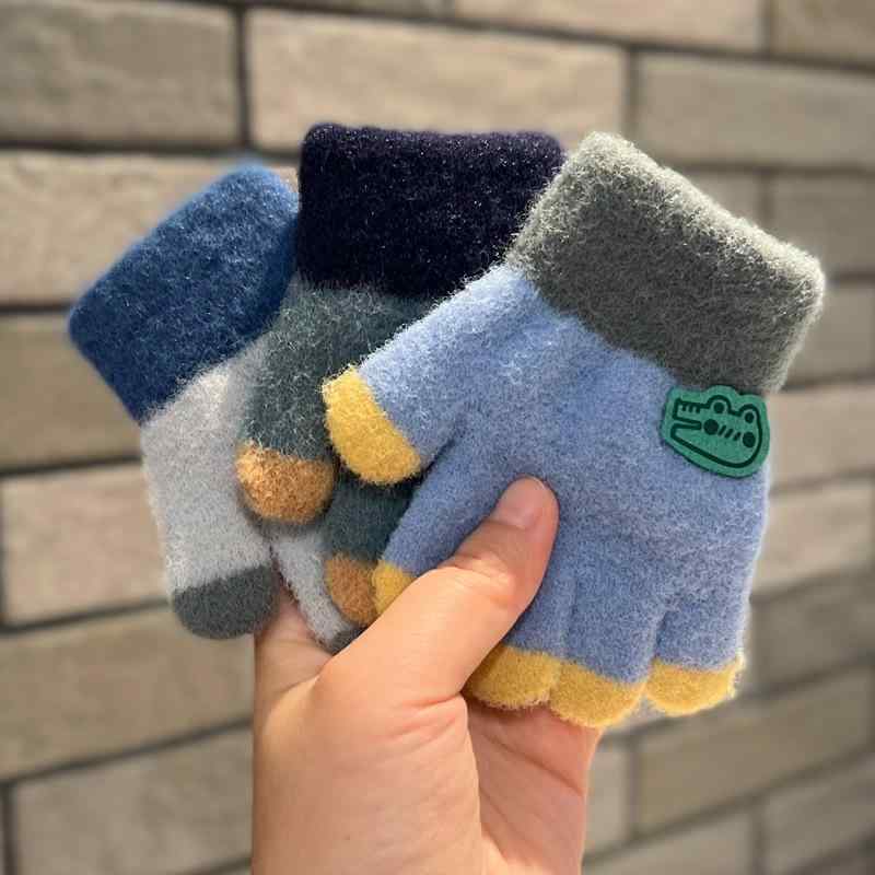 2個セット手袋 子供用 1歳 2歳 3歳 男の子 防風 防寒 ニット 手袋 かわいい 小さな指 秋冬 薄手 恐竜 青 孔雀青 紺色 杏色 グレー オレンジ