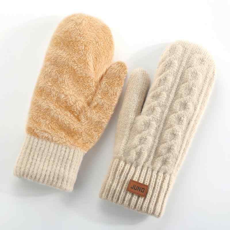 手袋 レディース 女性用 秋冬 防寒 保温 あったか 裏起毛 厚手 ダブルレイヤー ミトン ニットグローブ スキー スノーボード アウトドア 通勤 通学 普段使い カジュアル アクリル