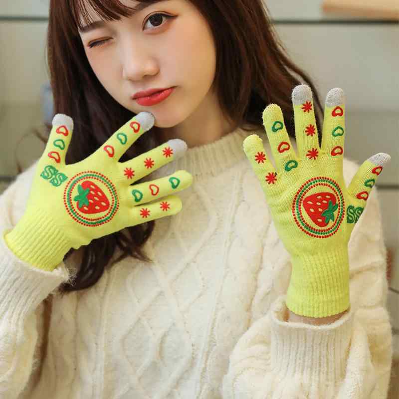 手袋 男女兼用 ユニセックス アクリルニット タッチパネル対応 スマホ操作 指あり 防寒 保温 暖かい プリント柄 多色展開 ファッション カジュアル 普段使い 通勤通学 冬物