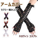 【最大20%OFFクーポン】 アームカバー 1組 レディース フリーサイズ ロング 半指 レース花柄 セクシー編み上げ 両腕カバー 伸縮 弾力 おしゃれ ハロウイン ハロウイングッズ コスプレ 日よけ 日焼け予防 紫外線対策 冷え対策 寒さ対策 オールシーズン 大人可愛い