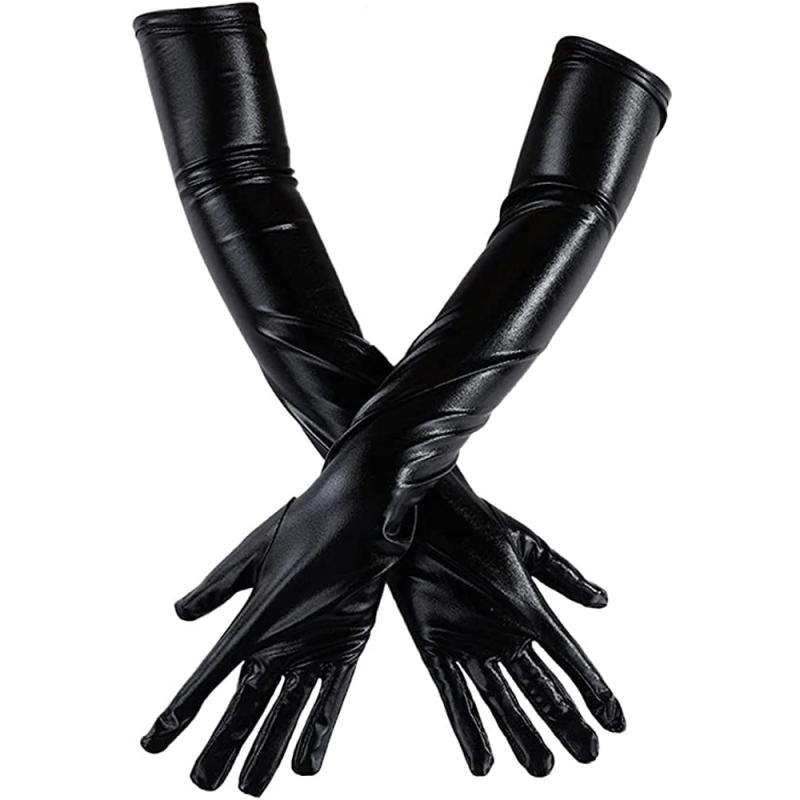 手袋 ユニセックス セクシー ロング丈 エナメル素材 コスプレ ダンス衣装 ポールダンス パフォーマンス タイトフィット 50cm ブラック シルバー ゴールド レッド