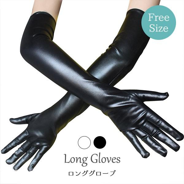 ロンググローブ ドレス アームグローブ 黒 白 ブラック ホワイト つや有り 5本指 合皮手袋 ステージ 仮装 小道具 ハロウィンコスプレ 魔女 吸血鬼 パーティー 祭り イベント 舞台 学園祭 文化祭 ライブ カラオケ ダンサー 発表会 派手 セクシー ja162x1x1x1