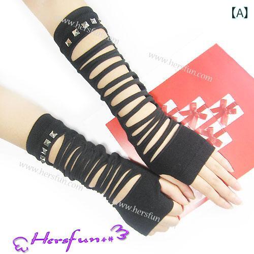 手袋 レディース ブラック コットン 指なし手袋 スタッズ レース ダメージ加工 セクシー パンク ロック ジャズ ダンス ステージ 演出 イベント コスプレ