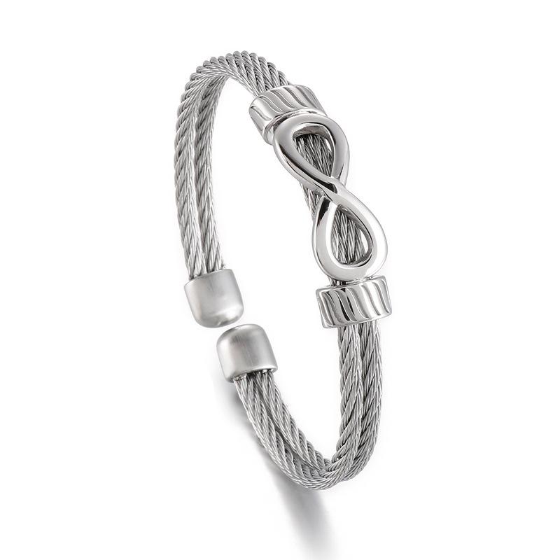 ブレスレット メンズ チタン鋼 スティールカラー 編み込み 鋼線 ロープ バングル パンク ヒップホップ 無限大 インフィニティ ステンレス オープン 手環 電気メッキ加工