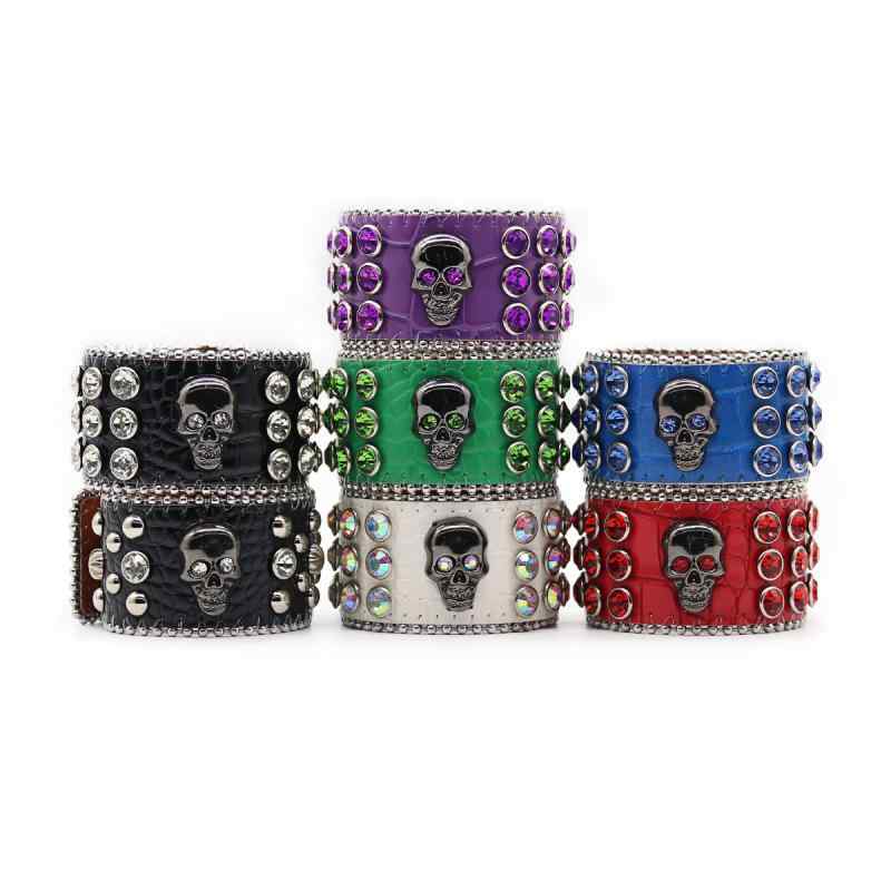 ブレスレット メンズ レディース スカル ヒップホップ パンク ストリート コスプレ レザー ブレスレット ブラック ホワイト ピンク レッド ブルー グリーン パープル