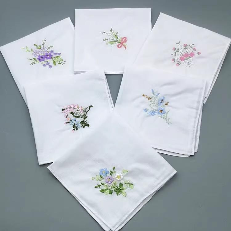 ハンカチ レディース 女性用 綿 コットン 刺繡 花柄 薄手 軽量 柔らか ソフト エレガント 上品 吸湿速乾 スクエア 普段使い 汗拭き フォーマル ホワイト 白