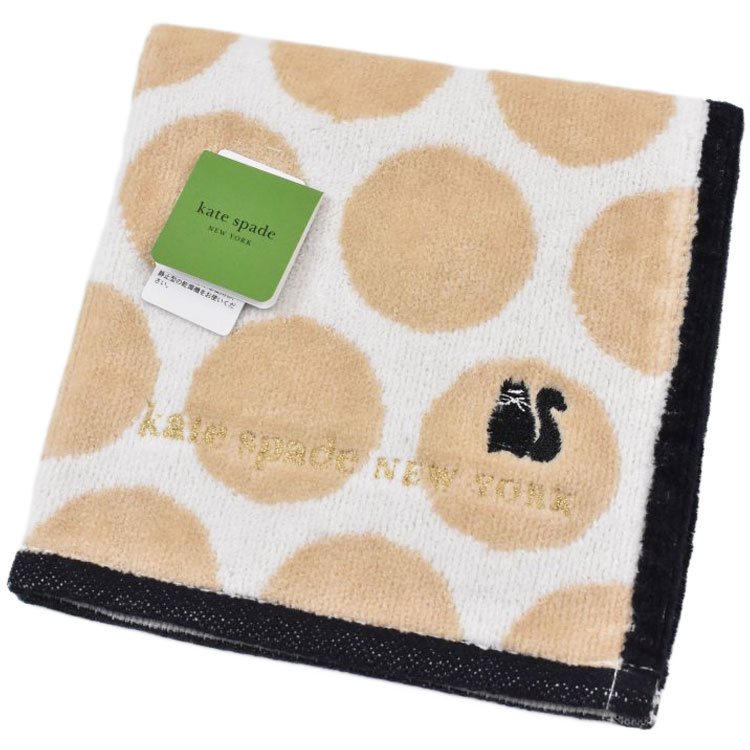ケイト スペード ニューヨーク タオルハンカチ 1枚 レディース ブランド kate spade new york ホワイト ライトベージュ ドット キャット ネコ 猫 ロゴ 刺繍 女性 婦人 母の日 20代 30代 40代 50代 60代 プレゼント ギフト おしゃれ かわいい ハンドタオル ポイント消化