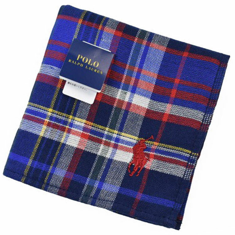 ポロ ラルフローレン タオルハンカチ タオル ハンカチ 1枚 メンズ 綿 ブランド ハイブランド POLO Ralph Lauren 紺 ネイビー × ブルー チェック ロゴ 刺繍 男性 紳士 父の日 実用的 20代 30代 40代 50代 60代 70代 プレゼント ギフト おしゃれ ハンドタオル ポイント消化
