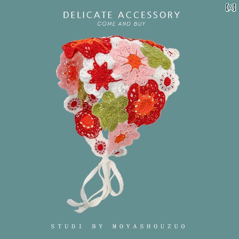 ヘア スカーフ 2025年 春 夏の 新作 ニット ガールズ 可愛い 田園 風 写真 三角 スカーフ ヘッド ドレス デイジー ヘア バンド スカーフ ヘア アクセサリー