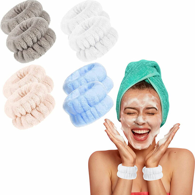 ペア リスト スパ ウォッシュバンド マイクロファイバー リストウォッシュ タオル バンド リストバンド 洗顔用 吸収リストバンド レディース ガールズ リストスウェットバンド 4ペア 8個