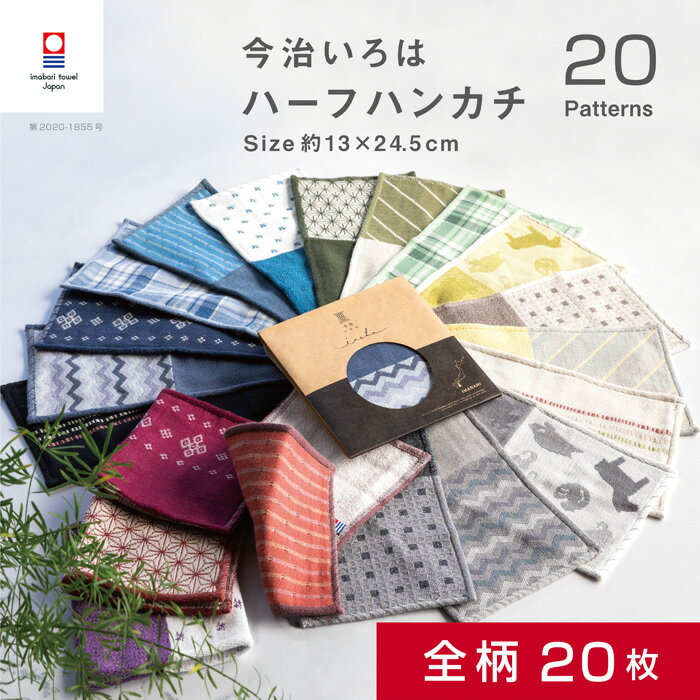 【今治いろはハーフハンカチ】全柄20枚セット 敬老の日 まとめ買い お得セット 送料無料 ハンカチ プチギフト 個包装 退職 お礼 男性 メンズ 今治タオル ハンドタオル タオルハンカチ ブランド 女性 イベント ガーゼ コンパクト 買いまわり 新生活 準備 メーカー直送
