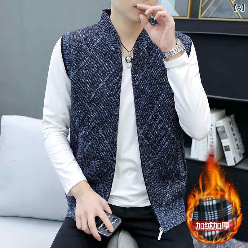 ニットカーディガン メンズ 秋冬 裏起毛 ジップアップ パーカー 厚手 ブルゾン ジャンパー アウター 男性用 普段使い 部屋着 防寒 あったか 暖かい 紺色 青色 赤色