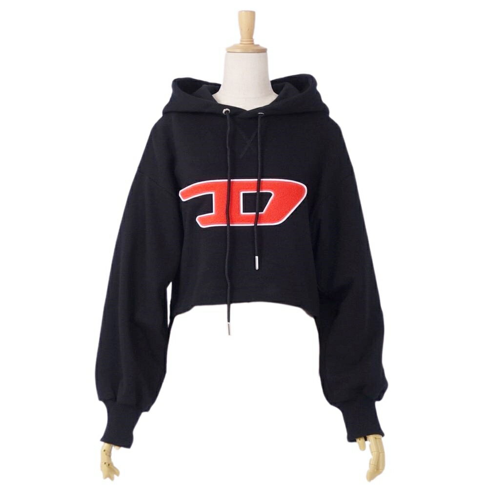 【美品】ディーゼル DISEL スウェット パーカー クロップド フーディー ロゴ プルオーバー コットン トップス レディース XS ブラック【中古】