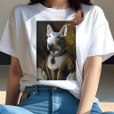 ブルテリア Tシャツ レディース 犬ファン 半袖 春夏 犬柄 プリント カジュアル かわいい 人間用 個性派 ここだけのデザイン 面白 肖像画 ブルテリア ルビー ネックレス 王侯貴族