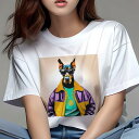 ドーベルマン Tシャツ 犬愛 ユニークデザインレディース 犬ファン 半袖 春夏 プリント 大人カジュアル かわいい 人間用 ギフト 個性的 猛暑対策 サングラス ドーベルマン ジャケット ネックレス