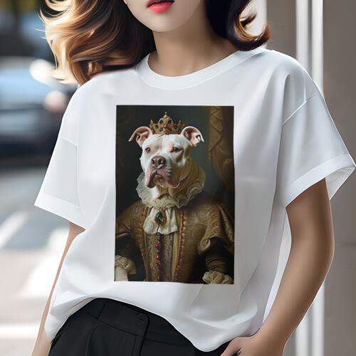 アメリカンピットブルテリア Tシャツ レディース 犬ファン 半袖 春夏 犬柄 プリント カジュアル かわいい 人間用 個性派 ここだけのデザイン 面白 王冠 アメリカンピットブルテリア ルネサンス 肖像画 ネックレス
