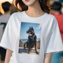 ドーベルマン Tシャツ 犬愛 ユニークデザインレディース 犬ファン 半袖 春夏 プリント 大人カジュアル かわいい 人間用 ギフト 個性的 猛暑対策 サングラス ドーベルマン ネックレス