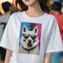 ホワイトスイスシェパードドッグ Tシャツ 犬愛 ユニークデザインレディース 犬ファン 半袖 春夏 プリント 大人カジュアル かわいい 人間用 ギフト 個性的 猛暑対策 サングラス ホワイトスイスシェパードドッグ ネックレス グラフィティ レンガ
