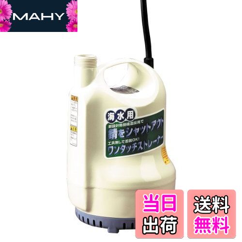 商品情報商品の説明内部構造一新・モーターの改良で耐久力1.5倍に向上(メーカー比) ■特長 ●モーター室を設けることでモーター金属部が海水に接触せず耐海水性が向上 ●ベアリングを608から6201に大型化し放熱を良好にし機械的寿命が向上 ●ケーシング、アウトカバーはPBT樹脂を使用、ストレーナーはPP樹脂を使用し、耐候性、耐海水性が向上 ●メカニカルシールをオイルボックス内に内蔵することにより異物の巻き付きが防止できメカニカルシールの信頼性が向上。 ●VR型オイルシールを設けてメカニカルシール部への海水侵入を防止しました。 ●ストレーナーは工具なしで取り外すことができメンテナンスフリー。 ●焼付防止安全装置を内蔵で長時間(1日8時間まで)の連続運転可能。 ■用途 ●海苔機械の組み込みに ●甲板の洗浄に ●船舶の緊急排水に ●ハッチの給排水に ●養魚場の排水に ●水の入れ替えに ●魚洗いになど主な仕様 口径:25mm(1")br最大吐出量:80L/minbr全揚程:6.5mbr電圧:AC-100V(60Hz)br電流:2.5Abrモーター出力:100Wbr回転数:3200rpmbr型式:コンデンサ誘導モーターbr電源コード:5m(漏電遮断器付)