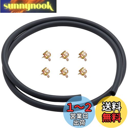 【送料無料】DFsucces 燃料ホース ニトリルゴム(NBR)ホース 3層構造 耐油 耐圧 耐熱 耐腐食性 バイク・自動車・芝刈り機用 全長1m 専用ホースクランプ 6個付き (内径6mm 外径12mm)