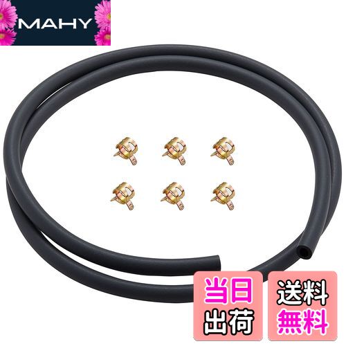 【送料無料】DFsucces 燃料ホース ニトリルゴム(NBR)ホース 3層構造 耐油 耐圧 耐熱 耐腐食性 バイク・自動車・芝刈り機用 全長1m 専用ホースクランプ 6個付き (内径6mm 外径12mm)