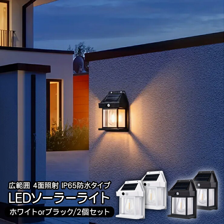 LED ソーラーライト 壁掛けタイプ 2個セット ブラック ホワイト ウォールランプ ガーデンライト モード切替 人感センサー ソーラーパネル 防災 ライト ランタン セキュリティ 対策 おしゃれ