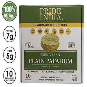 プライド オブ インディア - 緑豆プレーンパパダムレンズ豆クリスプ、6~10 カウント (3.53 オンス - 100 グラム) パック - タンパク質繊維と鉄分が豊富、グルテンフリーのビーガンレンズ豆クラッカー、健康的なインドの前菜、数秒で準備完了 Pride Of Ind