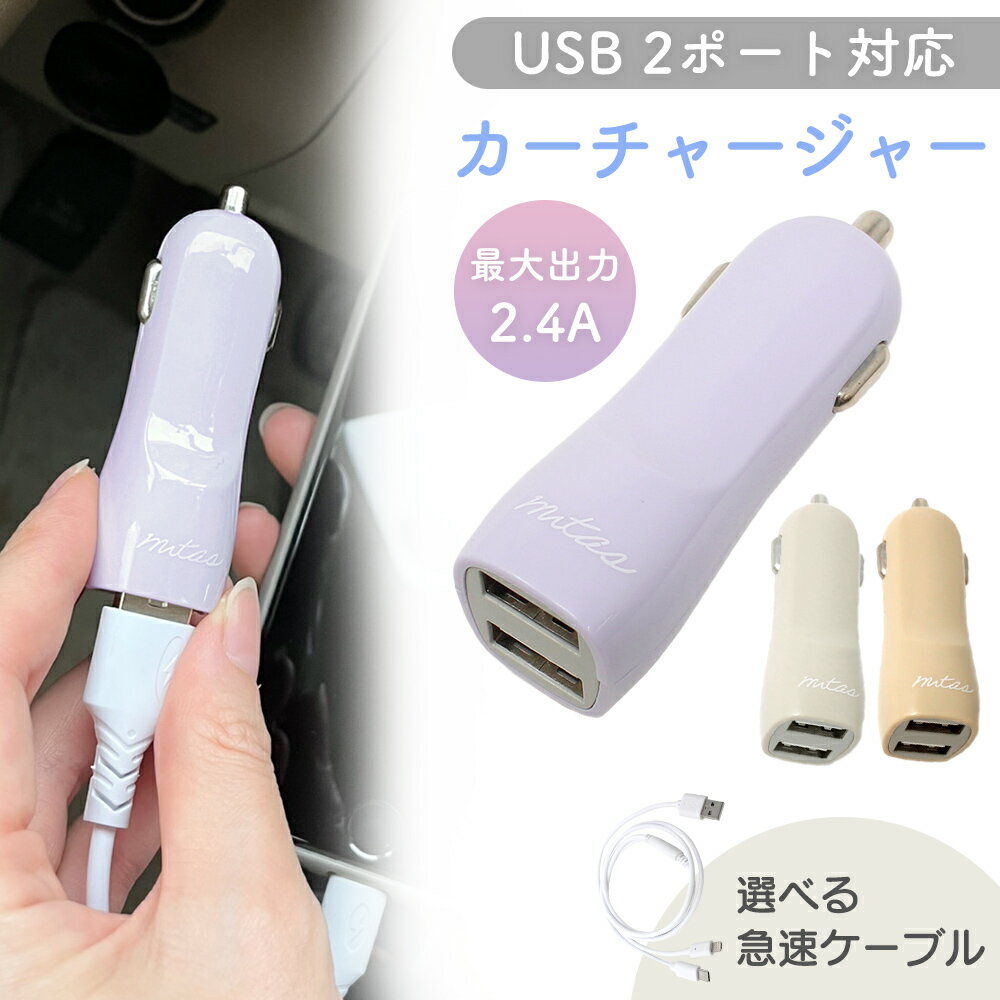 【mitas公式】USBポート シガーソケット 2.4A かわいい USB 2ポート 3in1 ケーブル くすみカラー 小型 増設 カーチャージャー 車 拡張 おしゃれ スマートフォン 車内電源 充電 充電器 USB充電 iPhone android タブレット 二股 スリム 分配 電源 スマホ