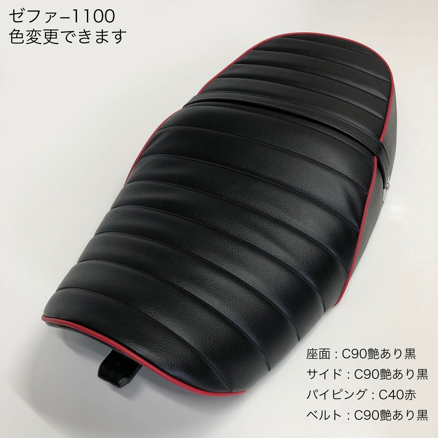 ゼファー1100 純正シート 対応 カスタム シート カバー タックロール ブラック 張替 純正シート対応 国内生産 オススメ バイクシート神戸 bsk-kch5611-c90p40
