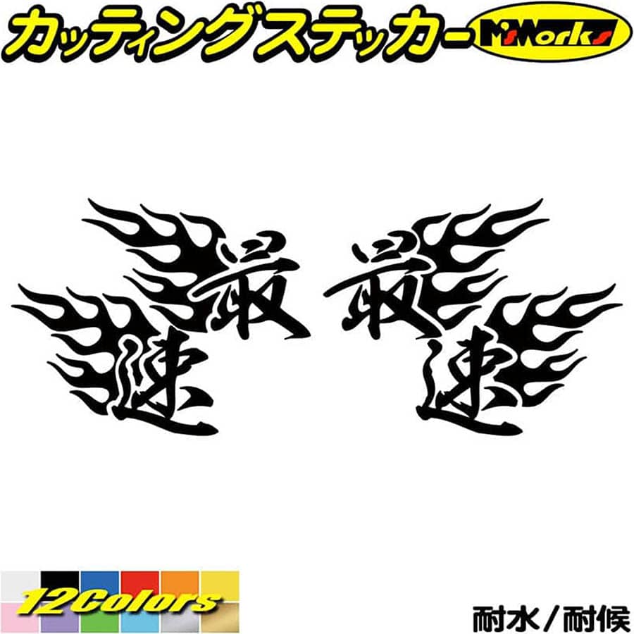 車 バイク ヘルメット かっこいい ステッカー 最速 ( Fire ファイヤー 炎 )・1 左右セット カッティングステッカー 全12色 走り屋 ヤンキー 文字 峠 ギター ボックス ケース おもしろ アウトドア 転写 シール 防水 ユニーク デカール おもしろ 自動車