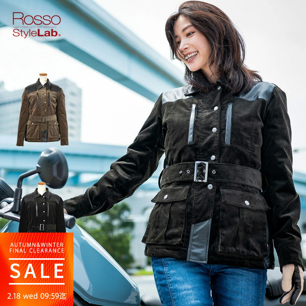 【FINALクリアランス|2/18 09:59迄】レディース バイク ジャケット コート 冬 パーシャル レザー コーデュロイ ウィンタージャケット 肩 肘 脊椎 胸部プロテクター付属 Rosso StyleLab ロッソスタイルラボ 2色/4サイズ ROJ-979 バイク オートバイ オシャレ