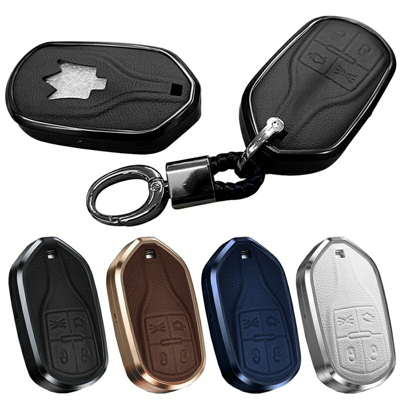 マセラティ アルミ製 本革 レザー メタル スマートキーケース キーカバー キーホルダー レヴァンテ ギブリ クアトロポルテ グランカブリオ グランツーリズモ 金属 牛革 アクセサリー メンズ レディース おしゃれ 保護カバー キーレスカバー 黒 ブラウン ホワイト 白