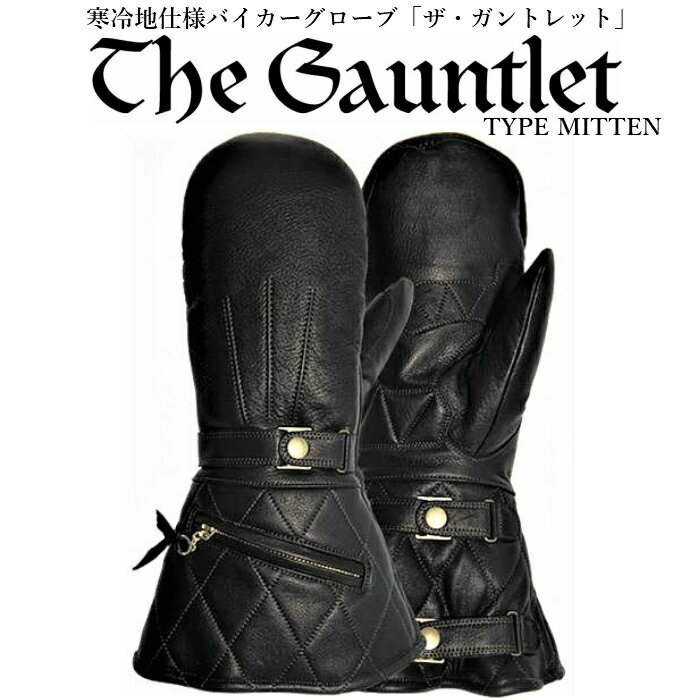 【POWWOW】パウワウガントレットグローブ タイプミトン 寒冷地仕様バイカーグローブ 冬用グローブ ブラック【3サイズ展開】XS(レディース)M,L【牛革】