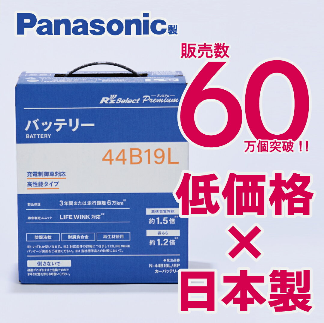 製品保証3年又は6万km パナソニック製 44B19L 【新品カーバッテリー】 標準車 充電制御車対応 R's select(アールズセレクト) プレミアム N-44B19L/RP