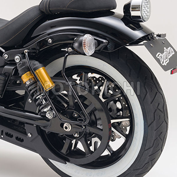 適合車種:YAMAHA BOLT 純正リアウインカーを移動させる必要無く、 サドルバッグを装着可能。 ベルトループが一体化した形状によりサドルバッグを 簡単に装着できます。(サドルバッグレール不要) リアサスより外側に出ている事でサドルバッグと リアサスの干渉による擦り傷が極力軽減できます。 YAMAHA純正オプション “バックレスト”との同時装着可能 デイトナ社製“バックレスト”との同時装着可能