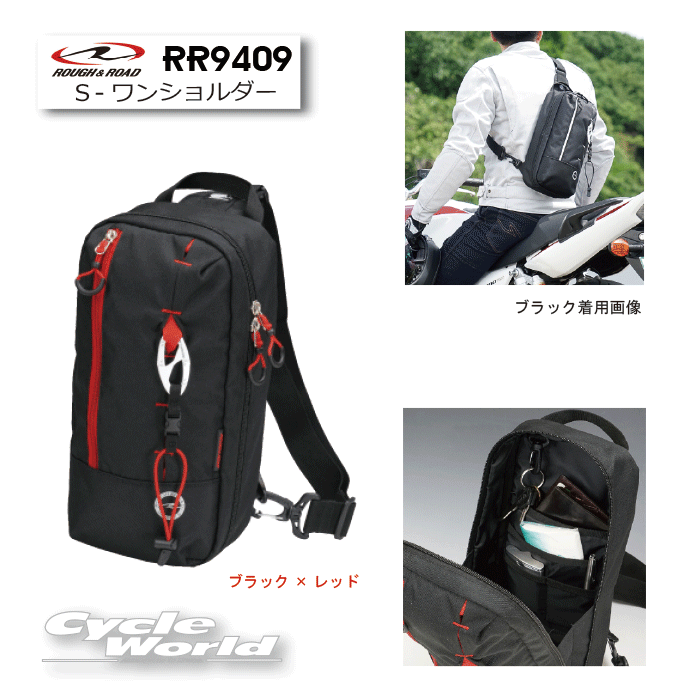 ◆収納力と軽さ、しなやかさが自慢のワンショルダーバッグ見た目以上の収納力も魅力◆■ 商品情報ソフトでしなやか、そしてシンプルがコンセプトのS-styleシリーズにワンショルダーが登場。スクエアな形状を採用した収納力が自慢でメインスペースで5リットル弱、サブスペースで2リットル弱と合わせて約7リットルの容量を誇ります。右利き左利きどちらでも使いやすいよう背面部左右に大型スリットポケットを設置し、肩に掛けたまま前に回せばメインと背面ポケットへのアクセスもしやすいよう設計されています。さらにダブルオープンのナスカン付きグローブホルダーが標準で付属したバイカースペシャル仕様。バイクで使ってもそれ以外のシチュエーションでも重宝間違いなしなワンショルダーバッグです。■品番: RR9409■品名: S-ワンショルダー■COLOR:ブラック、ブラック×レッド、Y.ブルー※ブラック、Y.ブルーは別ページでの販売となります。■SIZE:W16×D13.5×H34cm(最大)■容量:7ℓ■付属: グローブホルダー、カラビナ_/_/_/_/_/_/_/_/_/_/_/_/_/_/_/_/_/_/_/_/_/_/_/_/_/_/_/_/_/_/_/_/_/_/_/_/_/_/_/_/_/_/_/■商品について■※当店でお取り扱いしております商品は一部の商品【あす楽商品】を除き、 ほとんどの商品がメーカー取り寄せとなります。※メーカー在庫は随時変動しており、ご注文いただくタイミングにより欠品完売の場合がございます。※商品についての仕様・詳細はメーカーサイトをご覧いただきますようお願いいたします。※商品写真はメーカーサイトの写真より掲載させていただいております。 イメージと異なるという理由による変更キャンセル、または受注後の変更キャンセルは お受けできませんので、ご了承くださいますようお願いいたします。■在庫・納期について■※メーカー在庫は随時変動しており、ご注文いただくタイミングにより欠品完売の場合がございます。※在庫がある場合、数日(商品により異なります)での入荷となります。 その場合は「納期に間に合わない」などのキャンセルがお伺いできません。 納期に遅延が見られる場合もございますので、予めご了承の上ご注文をお願いいたします。※欠品の場合はメールにて納期をお知らせし、その際にご継続またはキャンセル(商品変更など) をご相談させていただきます。■沖縄・北海道の送料について■※【送料込】の商品につきましては、沖縄・北海道・一部離島など\630以外の地域は別途送料が掛かります。※【送料別】の商品の場合、お買い上げ合計金額により送料無料表示になる場合が御座いますが離島・沖縄・北海道は別途料金が掛かります。※注文確定時は送料がゼロとなっておりますが、受注後に変更させていただき、「配送料について」というメールを送信させていただきます。ご了承の返信メール確認後の商品手配及び発送となりますので、お急ぎのお客様は注文時の備考欄に「送料了承済」である旨、ご記入をお願いいたします。※詳細はPCトップページの[支払・送料]をご覧下さい。■ご入金について(コンビニ決済・銀行振込)■弊社にて在庫確認後在庫がございましたら、楽天市場より入金の案内メールが届きます。入金案内メールを確認するまではご入金はお控えください。万が一、入金案内前にご入金された場合は、欠品等でのご返金時に振込手数料を差し引いた金額でのご返金となりますので何卒ご了承下さい。 商品の手配はご入金確認後となります。上記の件、ご納得いただけない場合はお取引を中止させていただく場合がございますので、ご了承いただきますようお願いいたします。_/_/_/_/_/_/_/_/_/_/_/_/_/_/_/_/_/_/_/_/_/_/_/_/_/_/_/_/_/_/_/_/_/_/_/_/_/_/_/_/_/_/_/